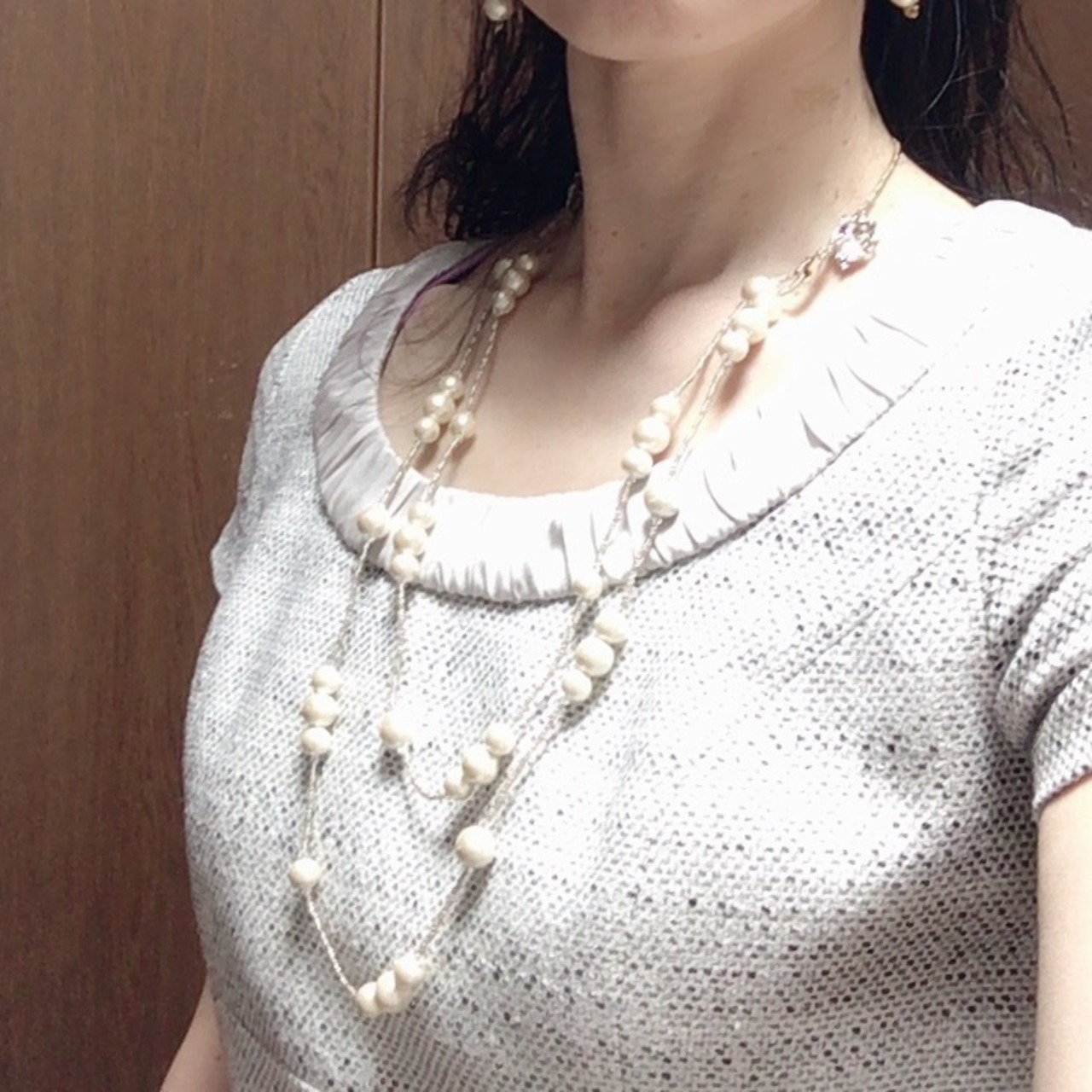 コットンパール スワロフスキー 春 入学式 スリーウェイ ロング 二連ネックレス
