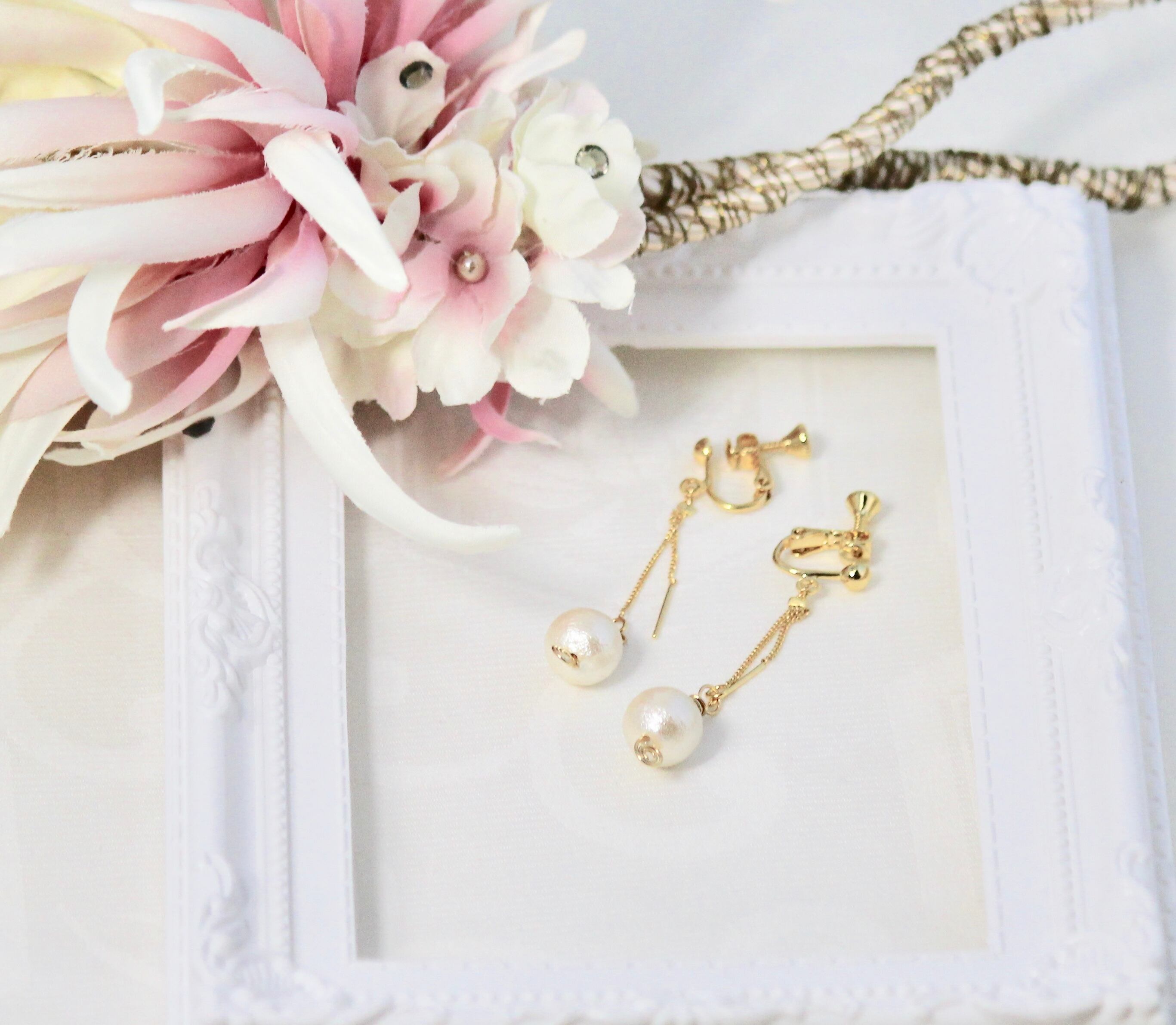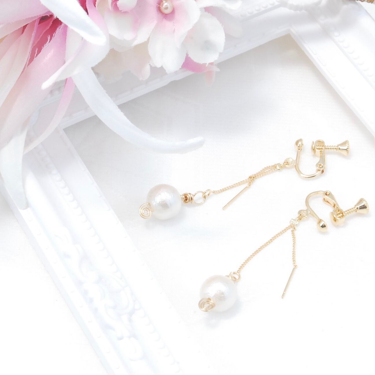 ボールチェーンピアス コットンパール 軽い 春 入学式