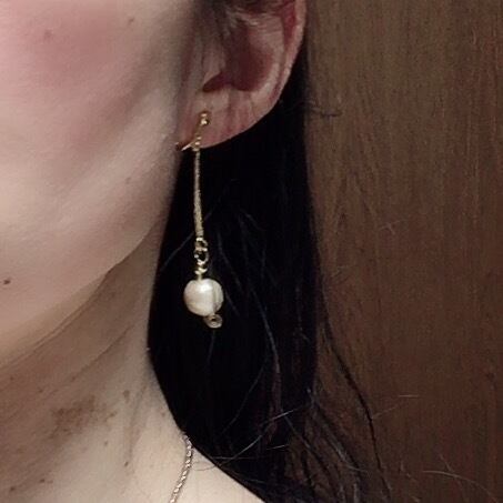 10ミリのコットンパール(カラー:キスカ)はつけてることを忘れるほどの軽さです。