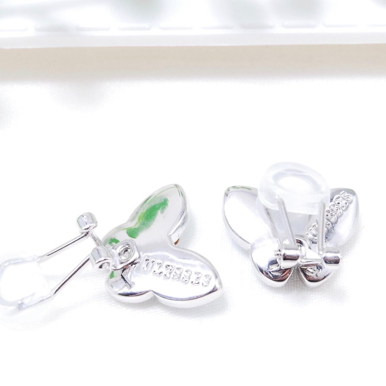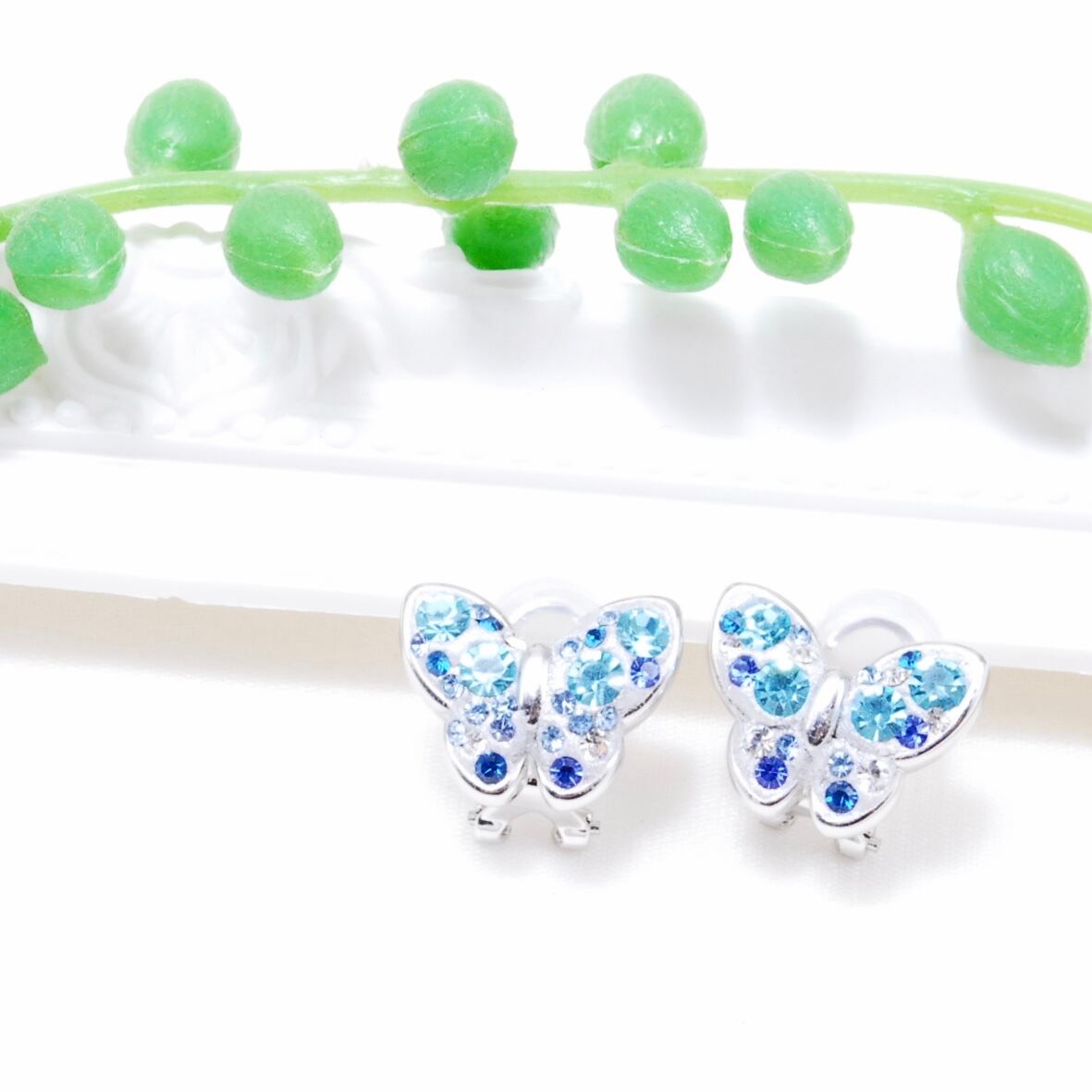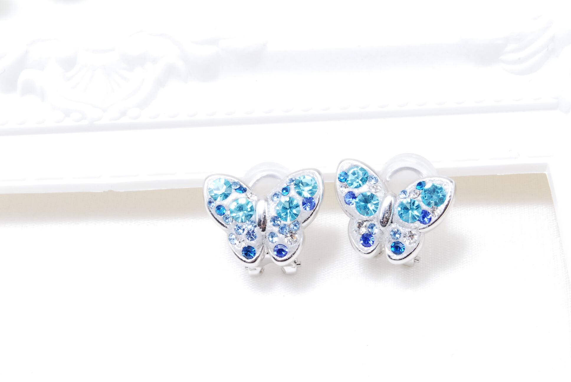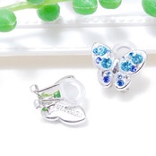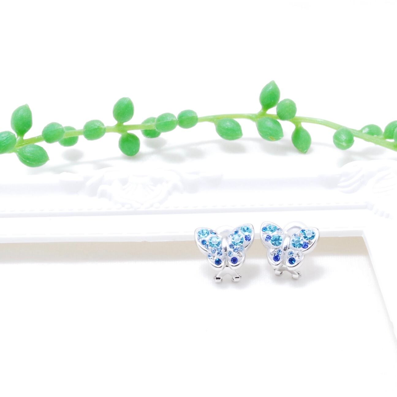 ブルー スワロフスキー 蝶パット付きクリップイヤリング