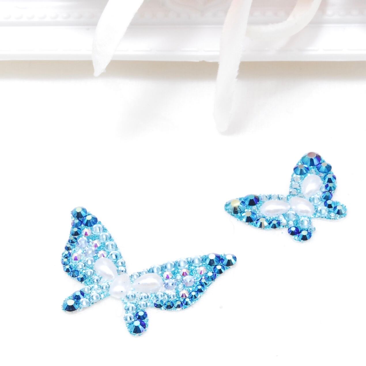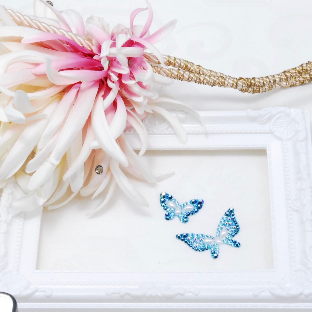 蝶ジュエリーシートをスワロフスキーラインストーンを使いユリシスブルーに仕上げました。