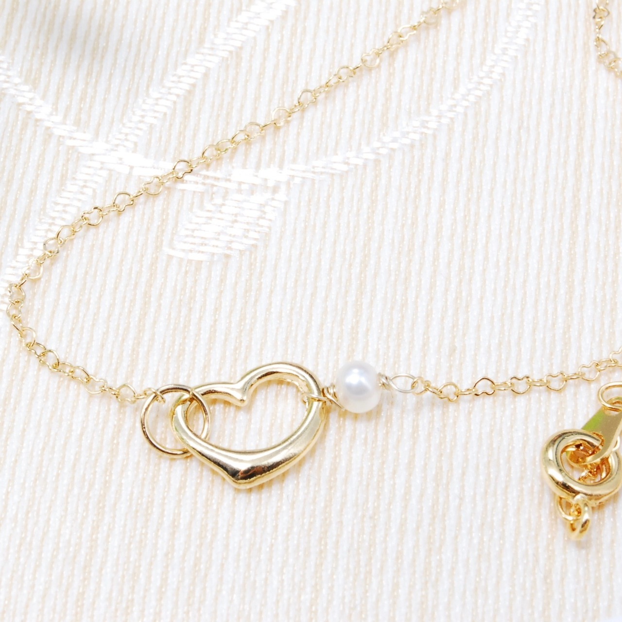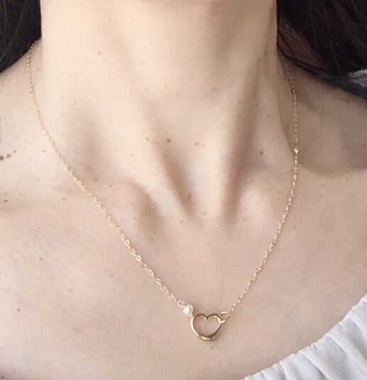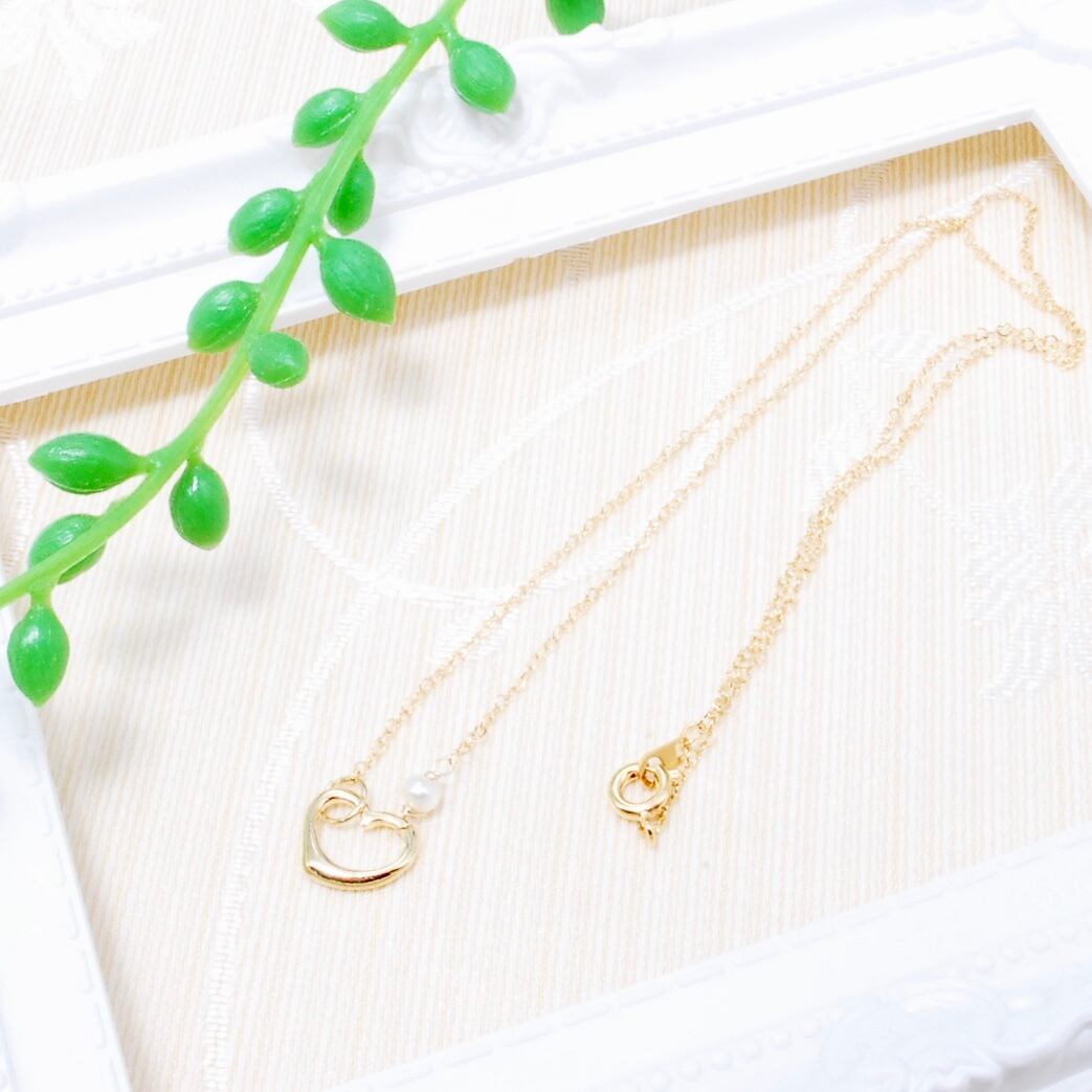ハートモチーフと一粒パールをワンポイントにした、シンプルなネックレスです。