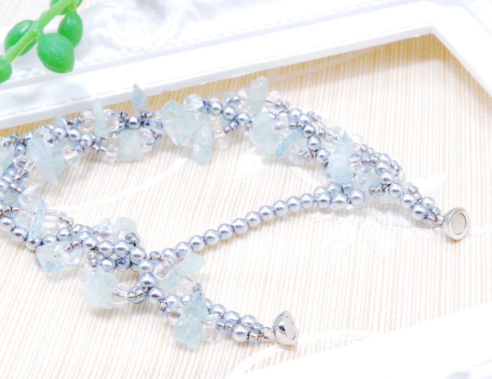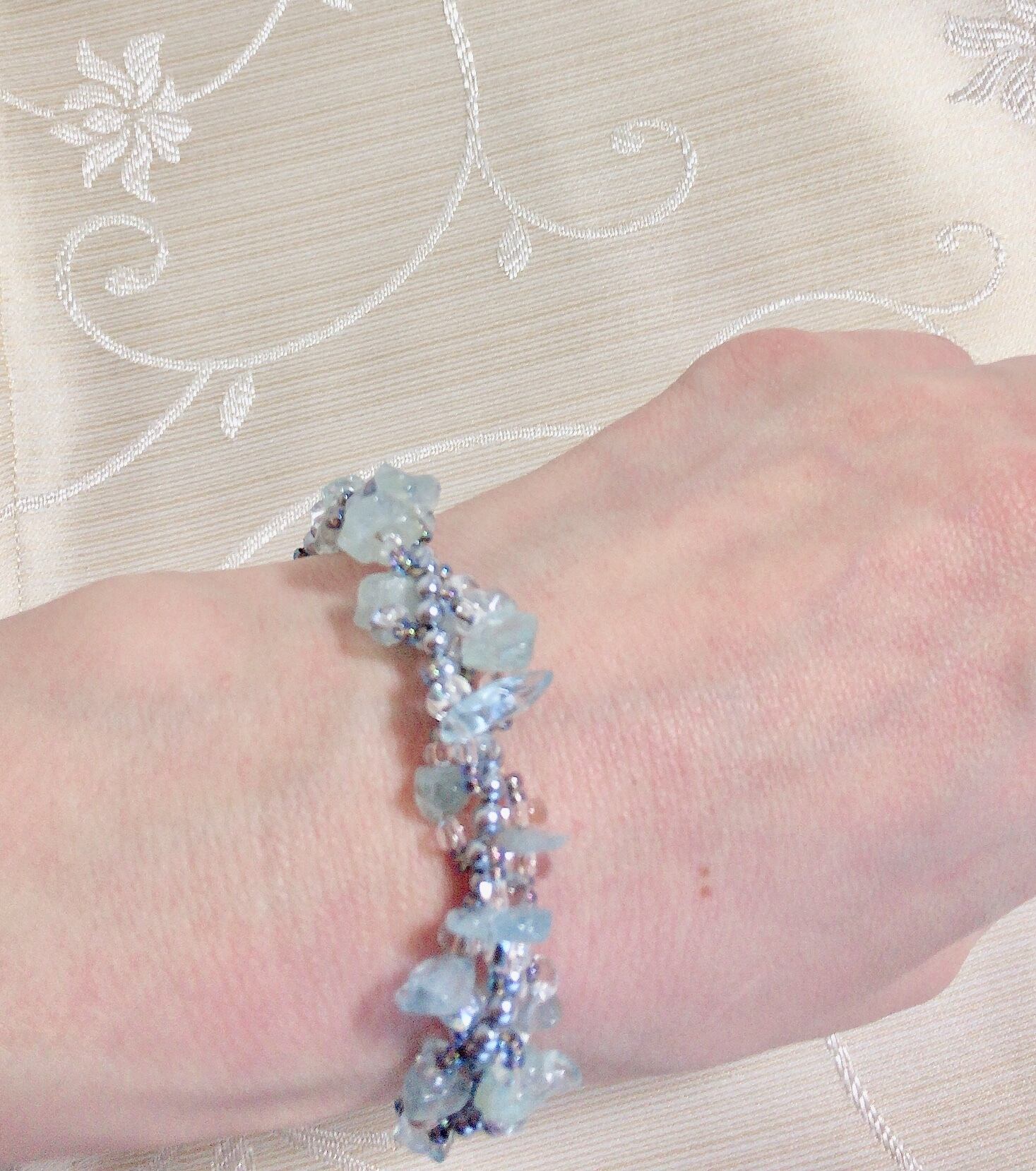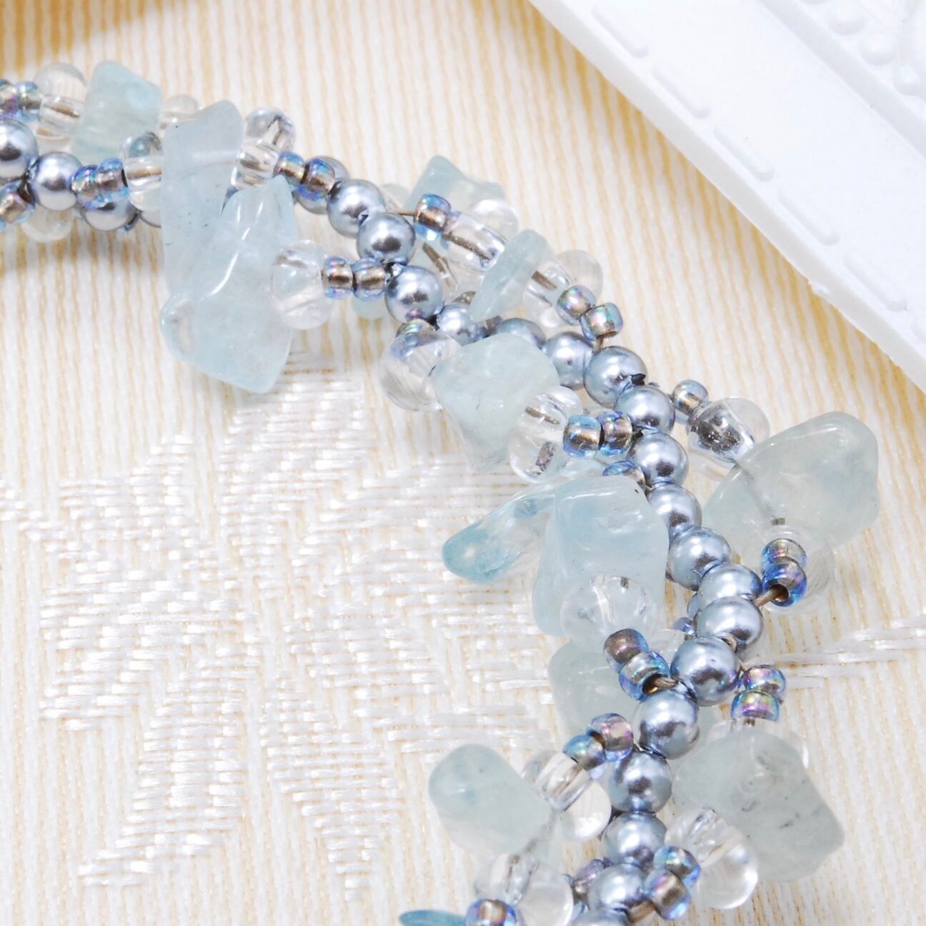 さざれ天然石アクアマリンをビーズステッチスパイラルロープでブレスレットにしました。