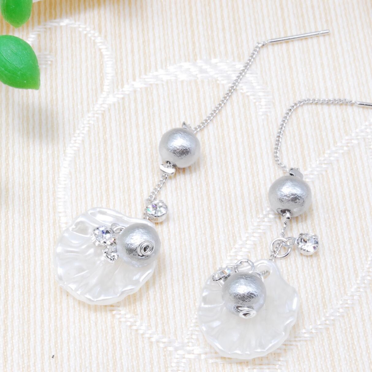 春物 夏物 誕生日 結婚式 二次会 パーティ ゴールデンウイーク 母の日 花火 浴衣 海 敬老の日 プレゼント 贈り物 大人可愛い 白 ホワイト イヤリング ピアス アメリカンピアス シェルピアス チェーンピアス 本ロジウム コットンパール