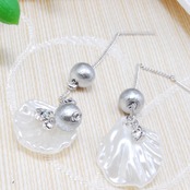 白い花びらシェルモチーフビーズに一粒のコットンパール。