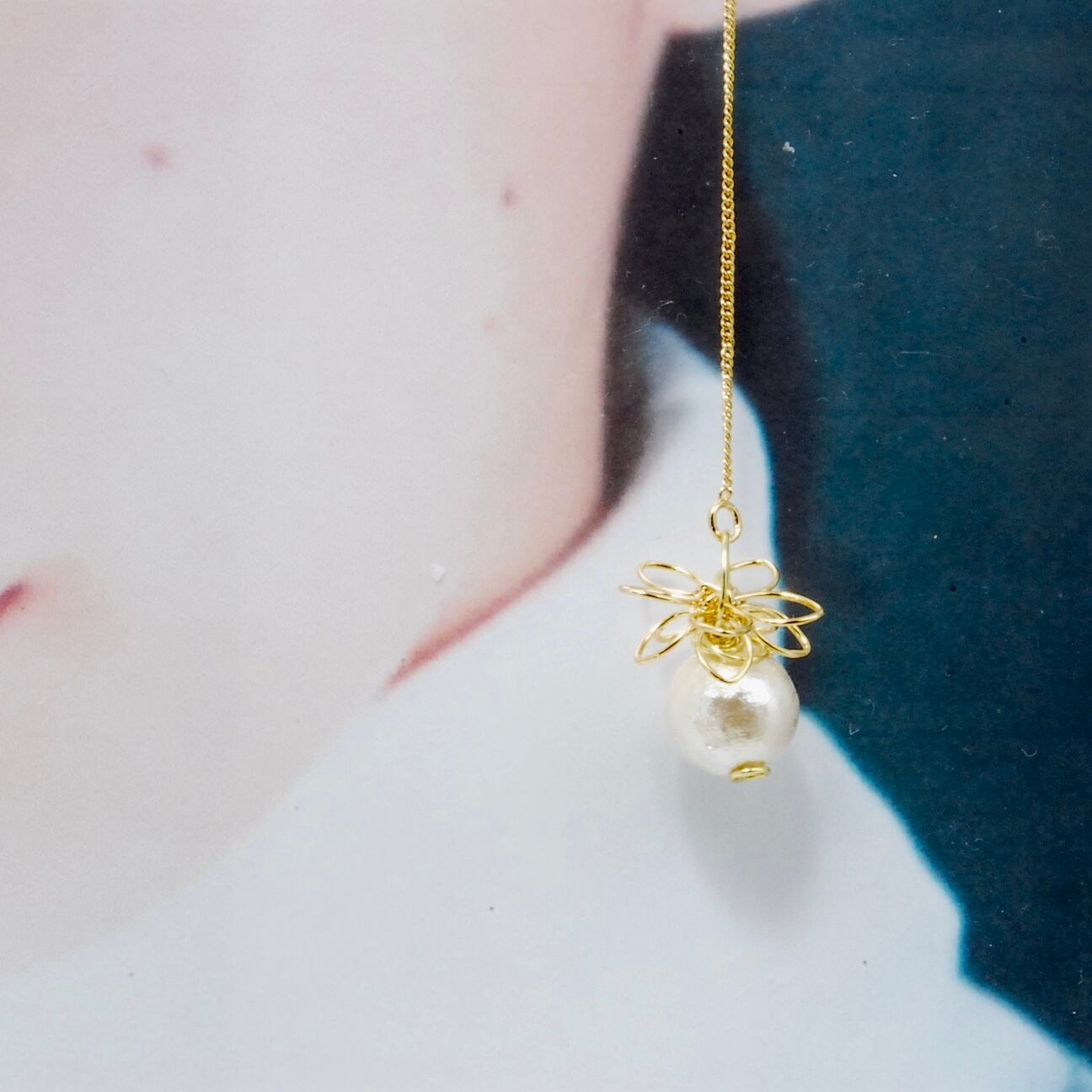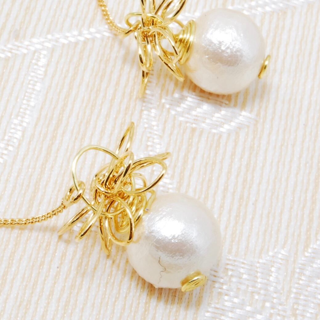 パール上部のワイヤーフラワーがアクセントになっています。