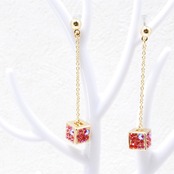 立方ベースにスワロフスキーチャトンを敷き詰めた、宝石箱のようなピアスです。