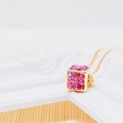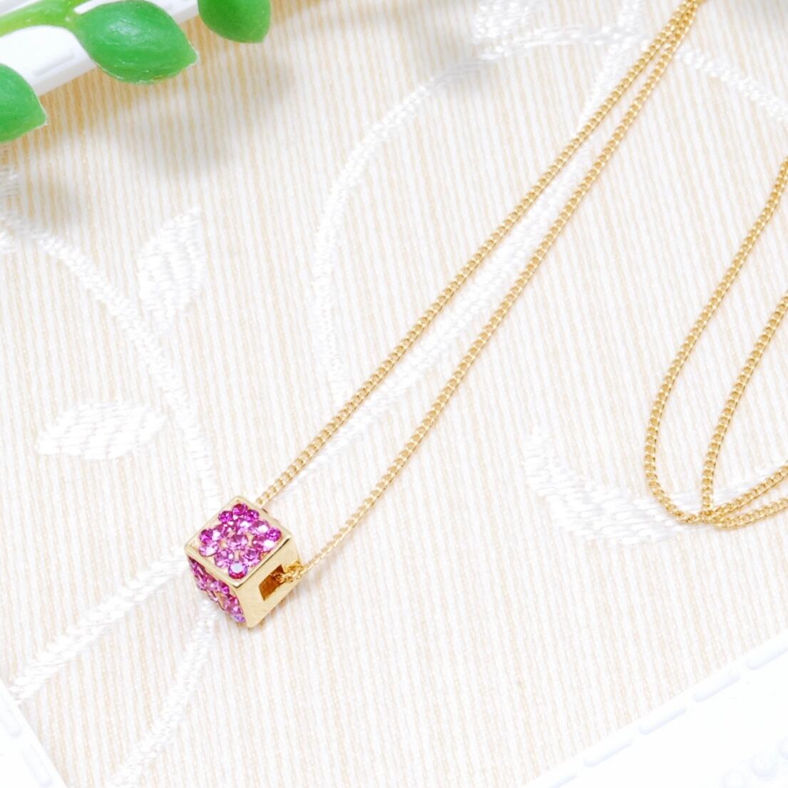 7mmキューブチャームにスワロフスキーチャトンをあしらった、キューブチャームネックレスです。