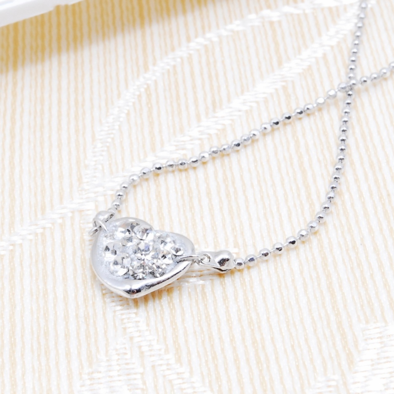 ハートモチーフにクリスタルビジューを敷き詰めたネックレスです。
