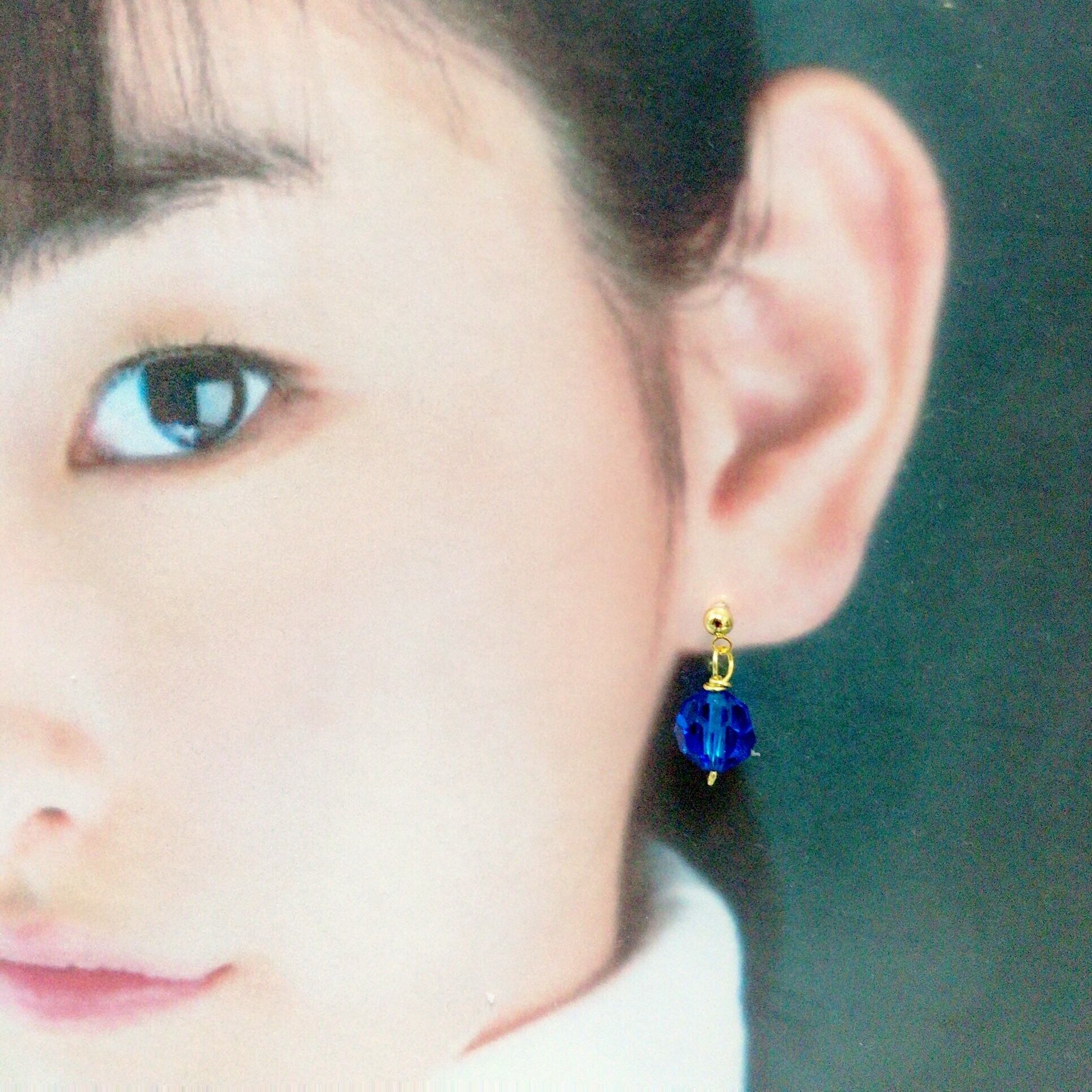 シンプルで使いやすい、スワロフスキーカプリブルーラウンドカットの一粒ピアスです。