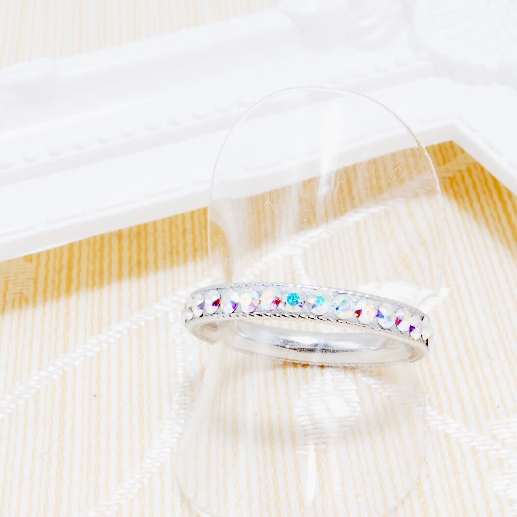 繊細な細身のリングに、虹色に輝くスワロフスキーオーロラビジューを敷き詰め仕上げました。