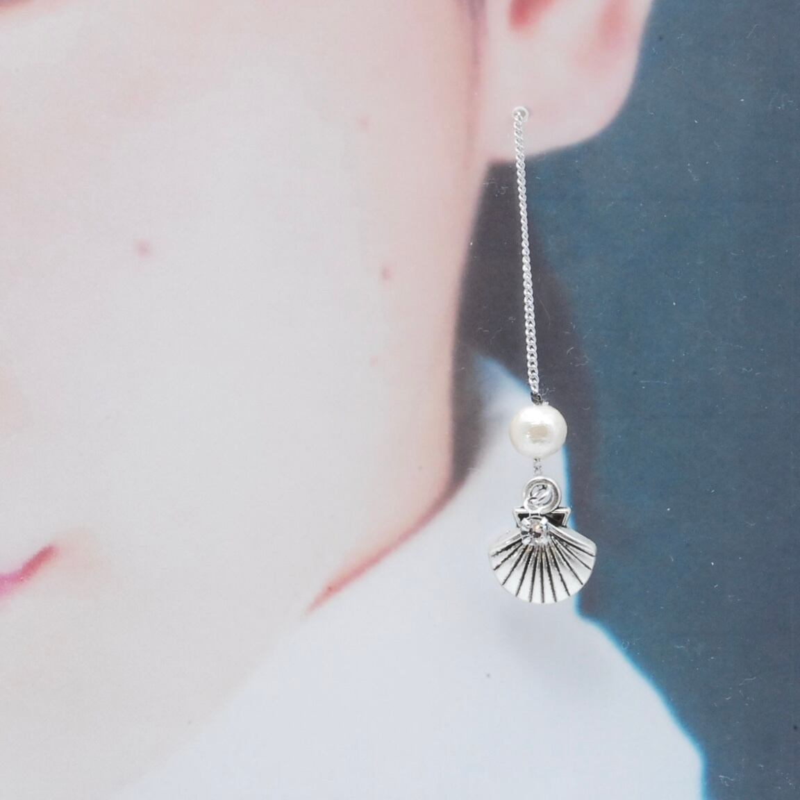 耳元で揺れる涼しげなデザインのピアスです。