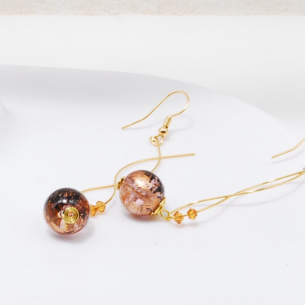 和モチーフの秋色デザインビーズをピアスにしました(^_^)