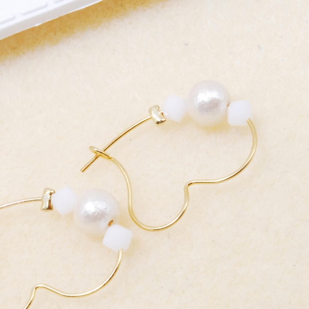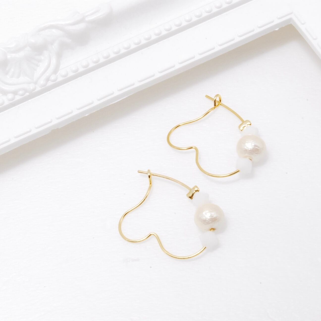 Forest Ray フォレストレイ ハート ピアス イヤリング スワロフスキー コットンパール 白