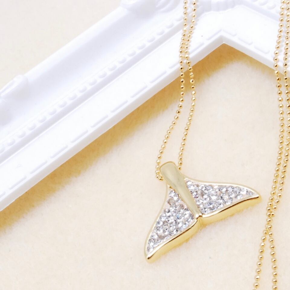 テイル(鯨の尾)のベースにクリスタルチャトンを敷き詰めた、パヴェペンダントです。