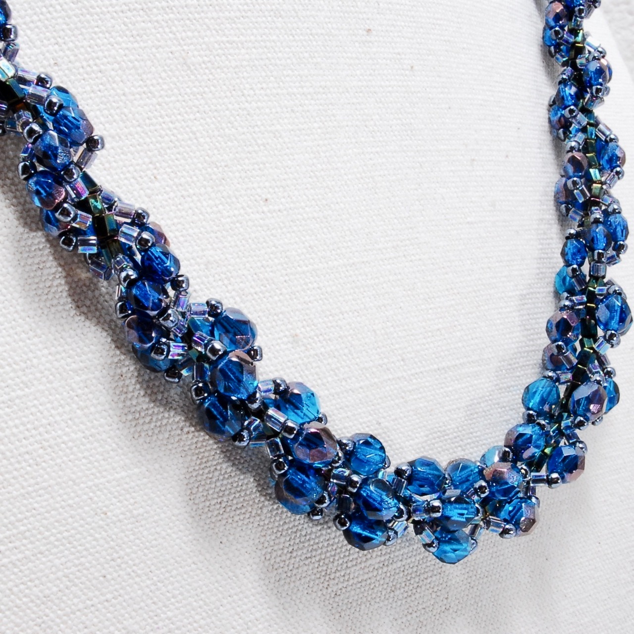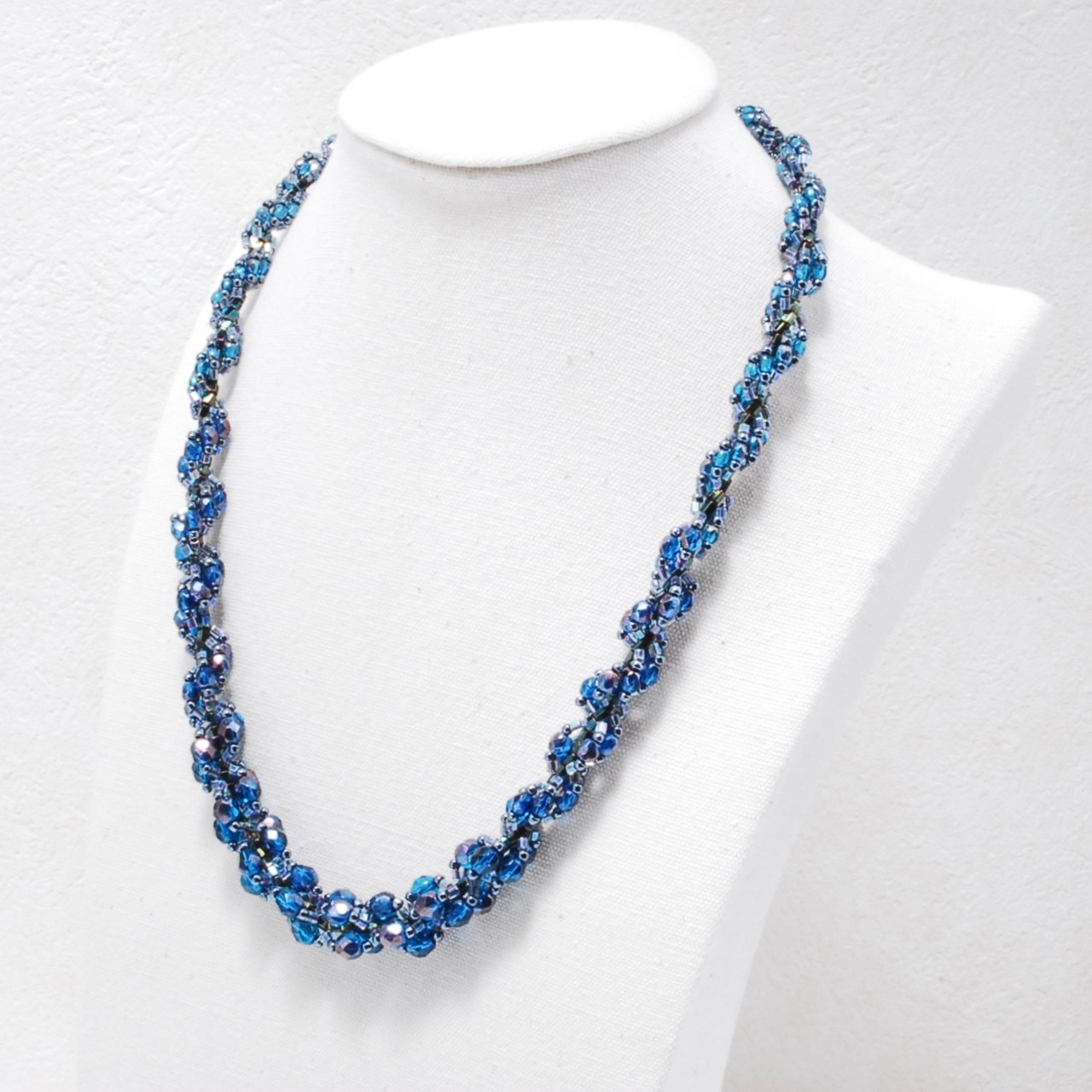 針と糸で編む、ビーズステッチ・スパイラルロープのネックレス(46センチ)