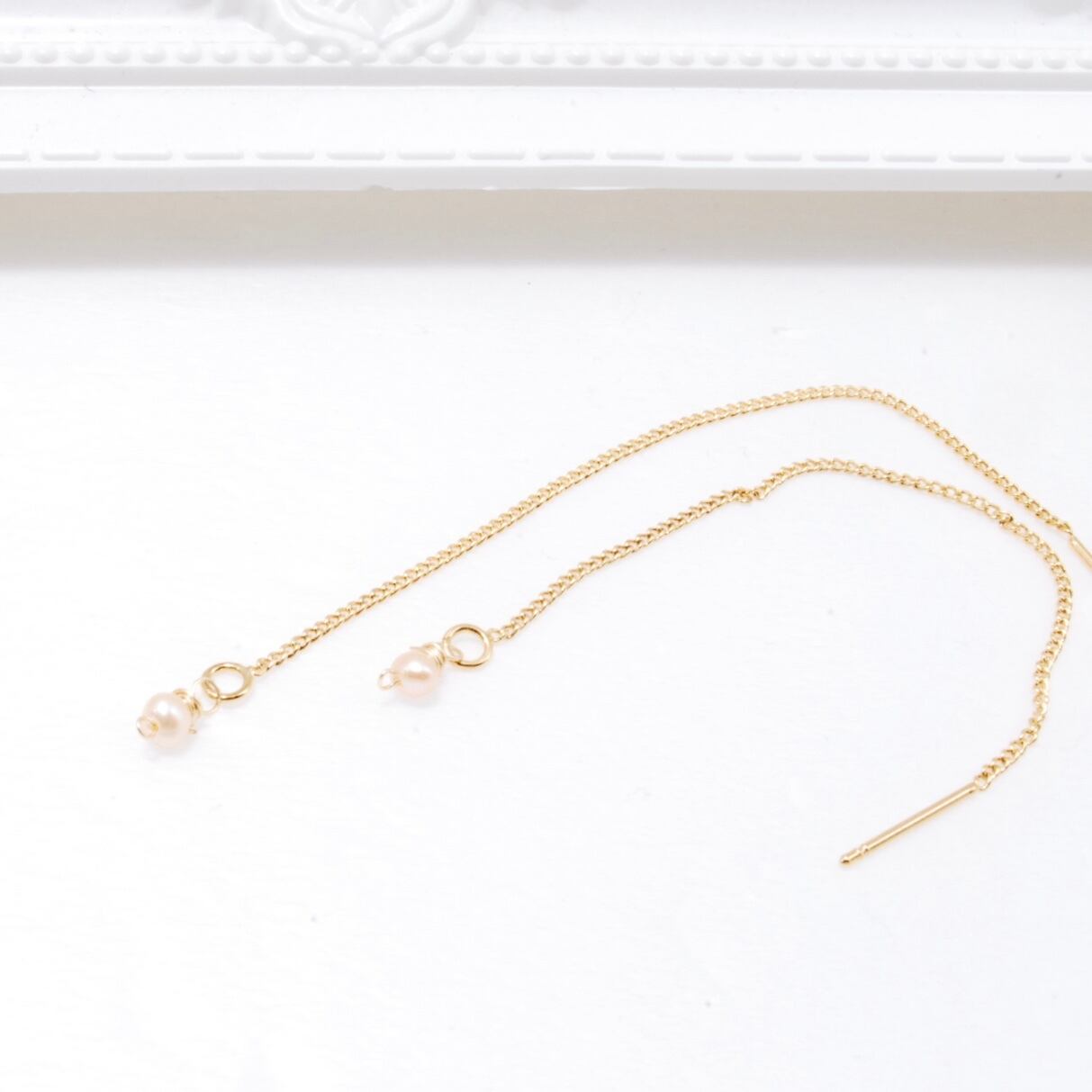 シンプルにゴールドチェーンと天然パールで作ったピアスは、シーンを選ばずどこにでもつけていくことができます。