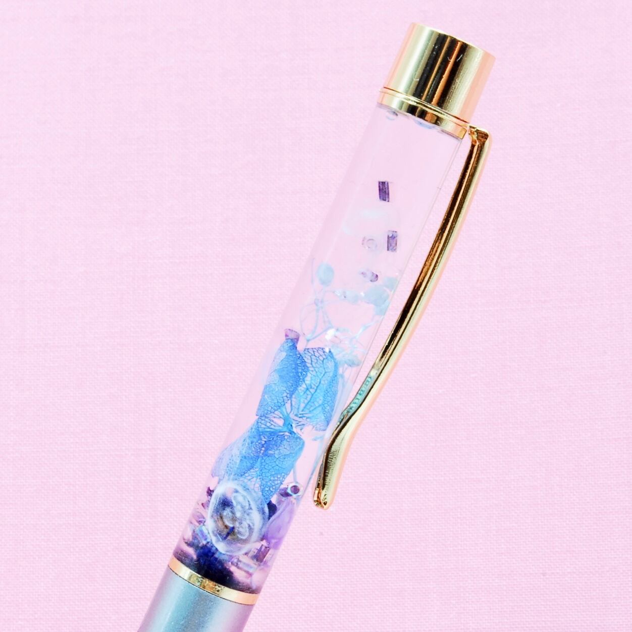 ギフト ハーバリウムボールペン ハーバリウム 父の日 プレゼント 送料無料 退職 祝電 人気 ドライフラワー プリザーブドフラワー 誕生日 結婚祝い 歓送迎会 ビーズ スワロフスキー 敬老の日 お祝い ブルー アジサイ