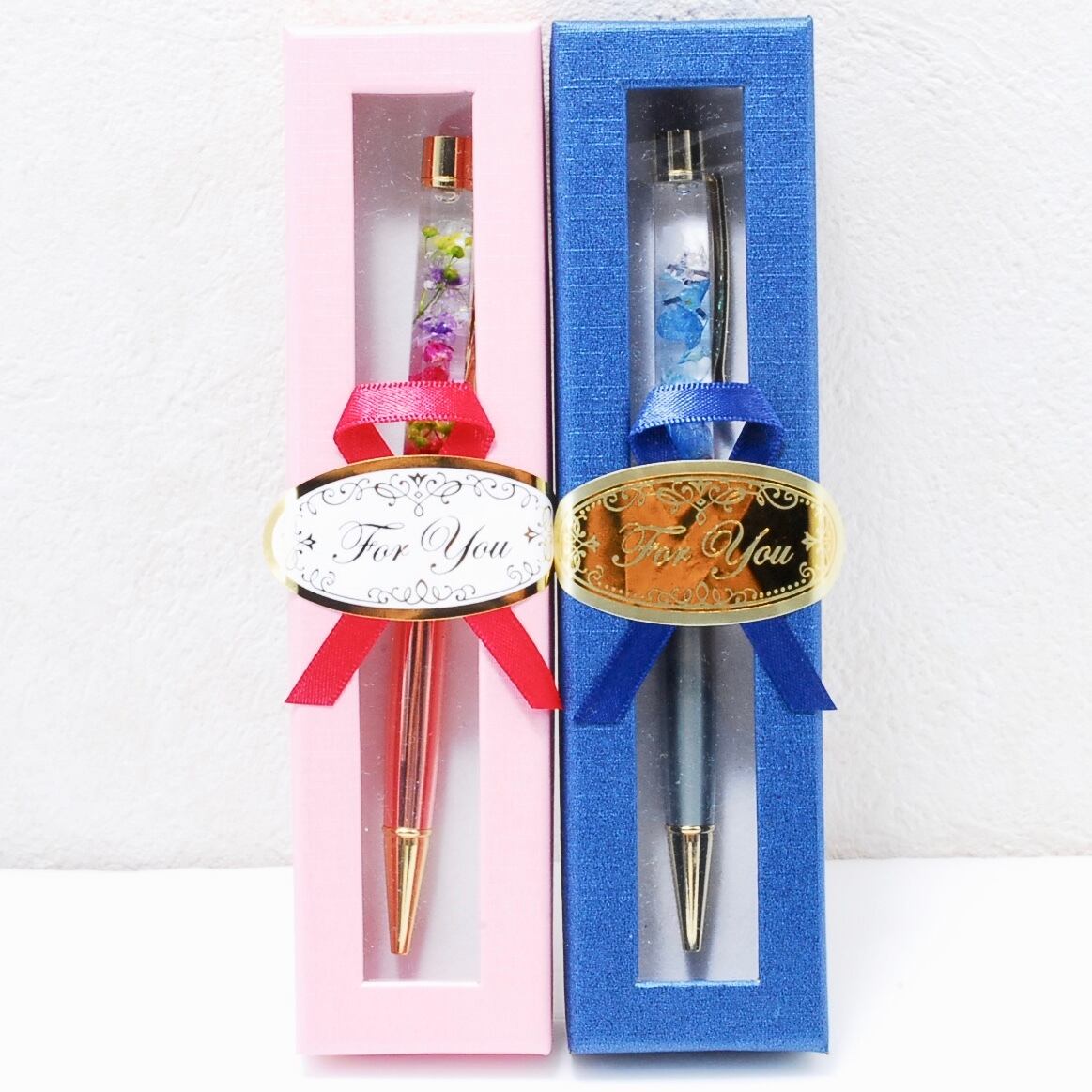 ペアギフトボックス ハーバリウムボールペン2本セット・カスミソウ・クラゲ・スワロフスキー入り送料無料