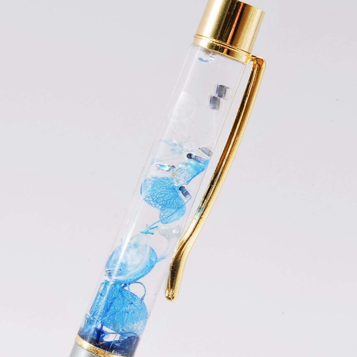 ギフト ハーバリウムボールペン ハーバリウム 結婚記念日 プレゼント 送料無料 退職 祝電 人気 ドライフラワー プリザーブドフラワー 誕生日 結婚祝い 歓送迎会 ビーズ スワロフスキー 敬老の日 お祝い ブルー アジサイ